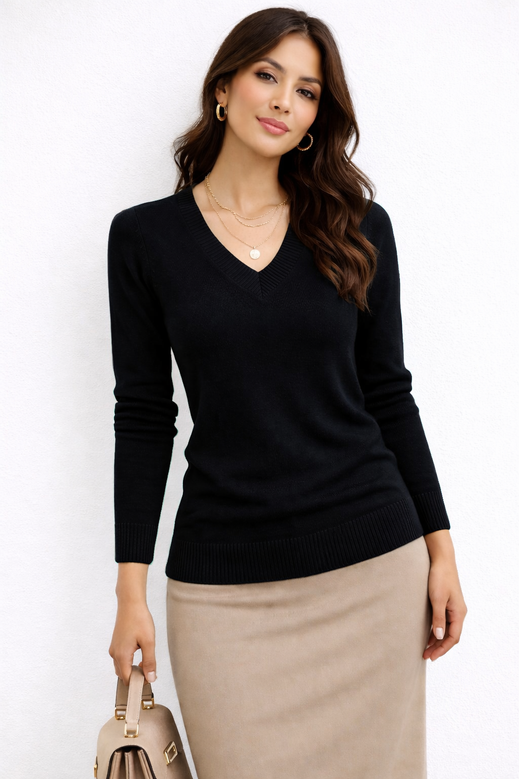 • Blusa Tricot Modal Gola V Lisa