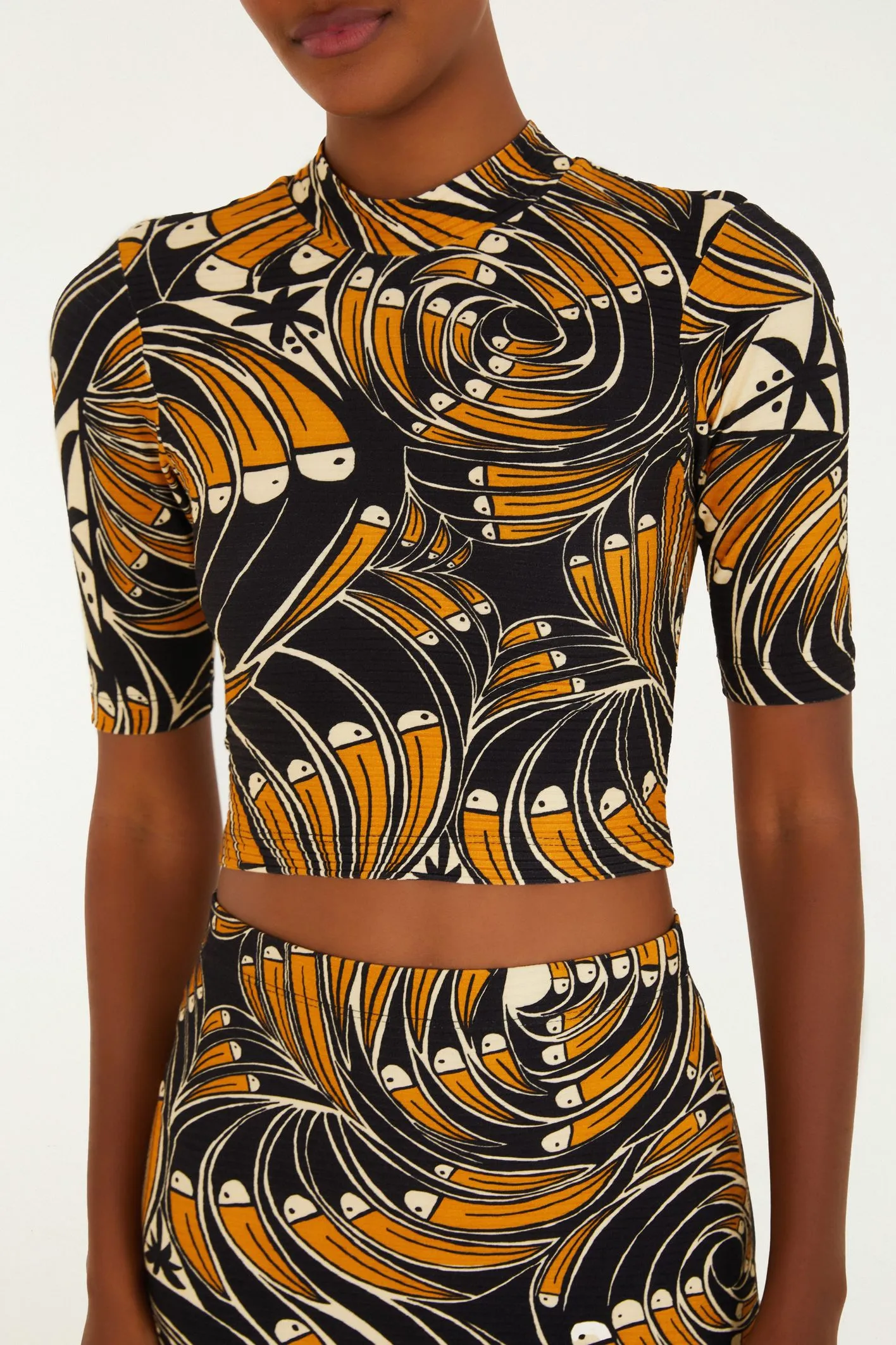 Blusa cropped Farm Rio Leque de Tucano com estampa exclusiva.