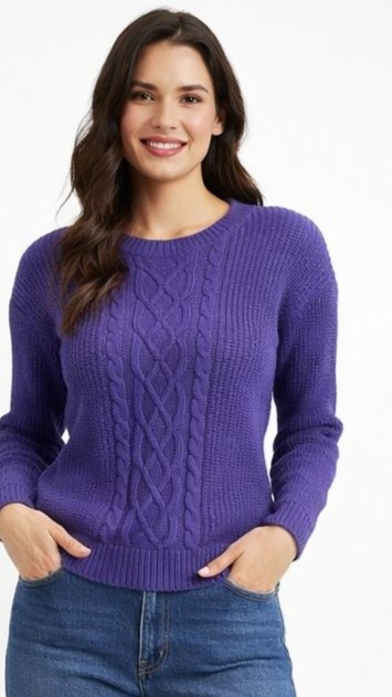 Confeccionada em tricô de tranças fechadas, possui shape justinho e decote redondo.