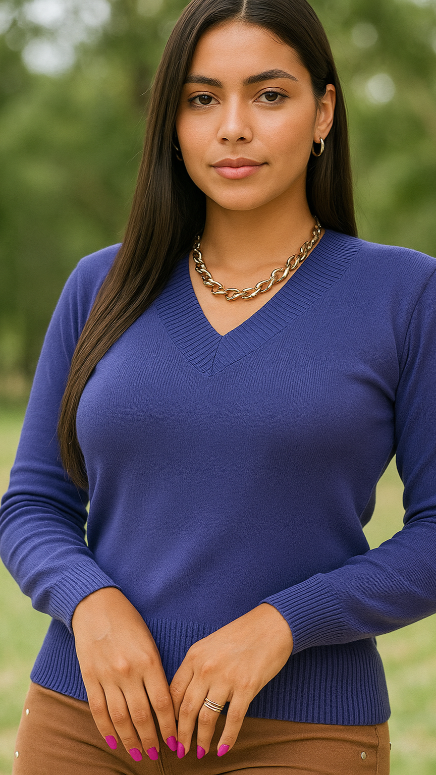 Blusa em Tricô Modal e Gola em V.Possui shape soltinho, mangas longas e Punhos ajustados, é uma peça elegante e versátil que combina estilo e simplicidade em um design atemporal. Com um tons, essa blusa oferece um toque de sofisticação ao visual.