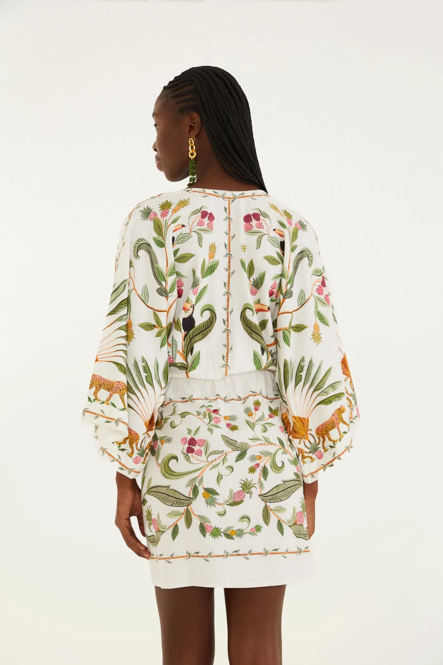 Body em tule, apresentando estampa exclusiva em fundo vermelho, com delicados cogumelos camuflados entre folhagens, criando um visual lúdico e encantador. Nas costas, o decote em U traz leve sensualidade. Acompanha body acoplado com elástico na parte traseira para melhor ajuste ao corpo. Fechamento inferior por botões de pressão, garantindo praticidade e conforto ao vestir.