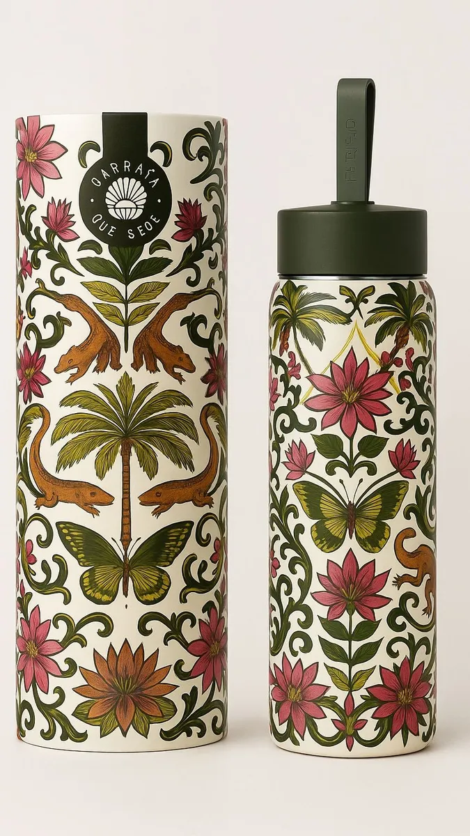 Com design prático e leve, possuem capacidade de 500ml, tampa segura e acabamento com estampas exclusivas que só a FARM sabe criar. Uma opção funcional e charmosa para manter sua hidratação sempre por perto – e com muito estilo!