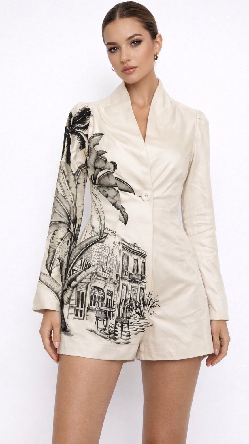 O macaquinho blazer Vila Teresa traz um design sofisticado inspirado no corte clássico de alfaiataria. Com decote em V profundo, mangas longas e abotoamento frontal, a peça une elegância e modernidade em uma proposta versátil que transita entre o casual chic e o sofisticado.