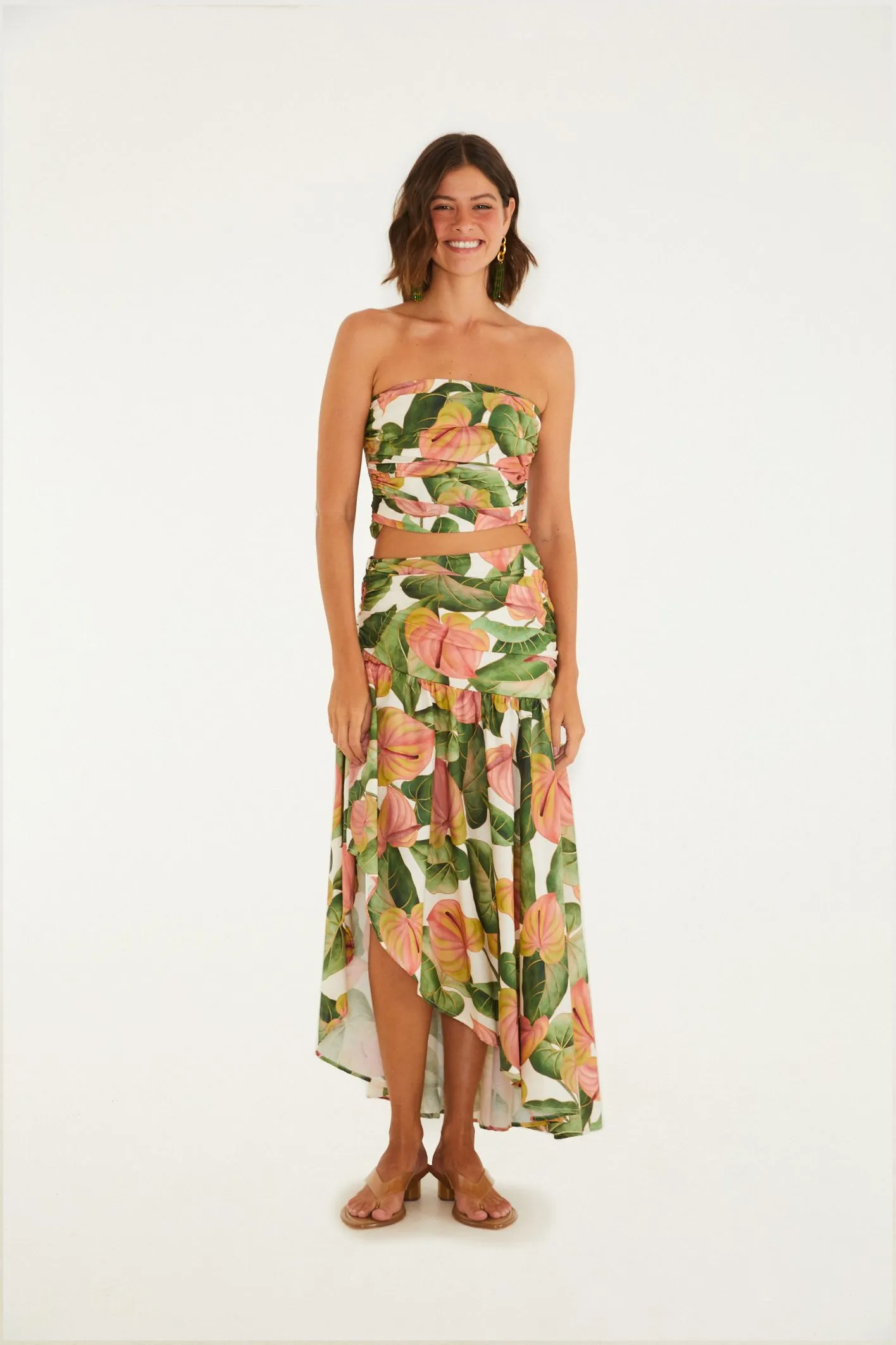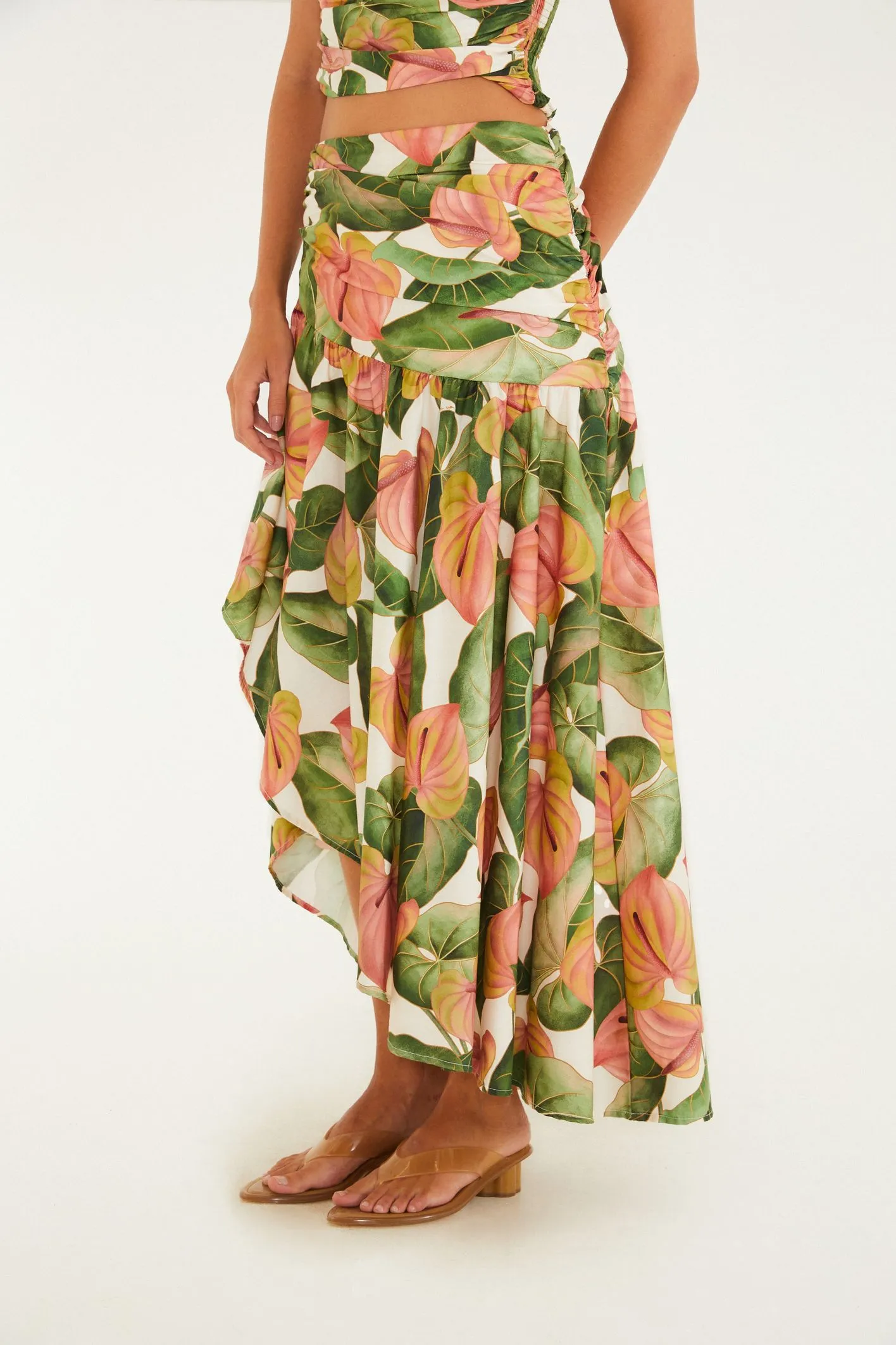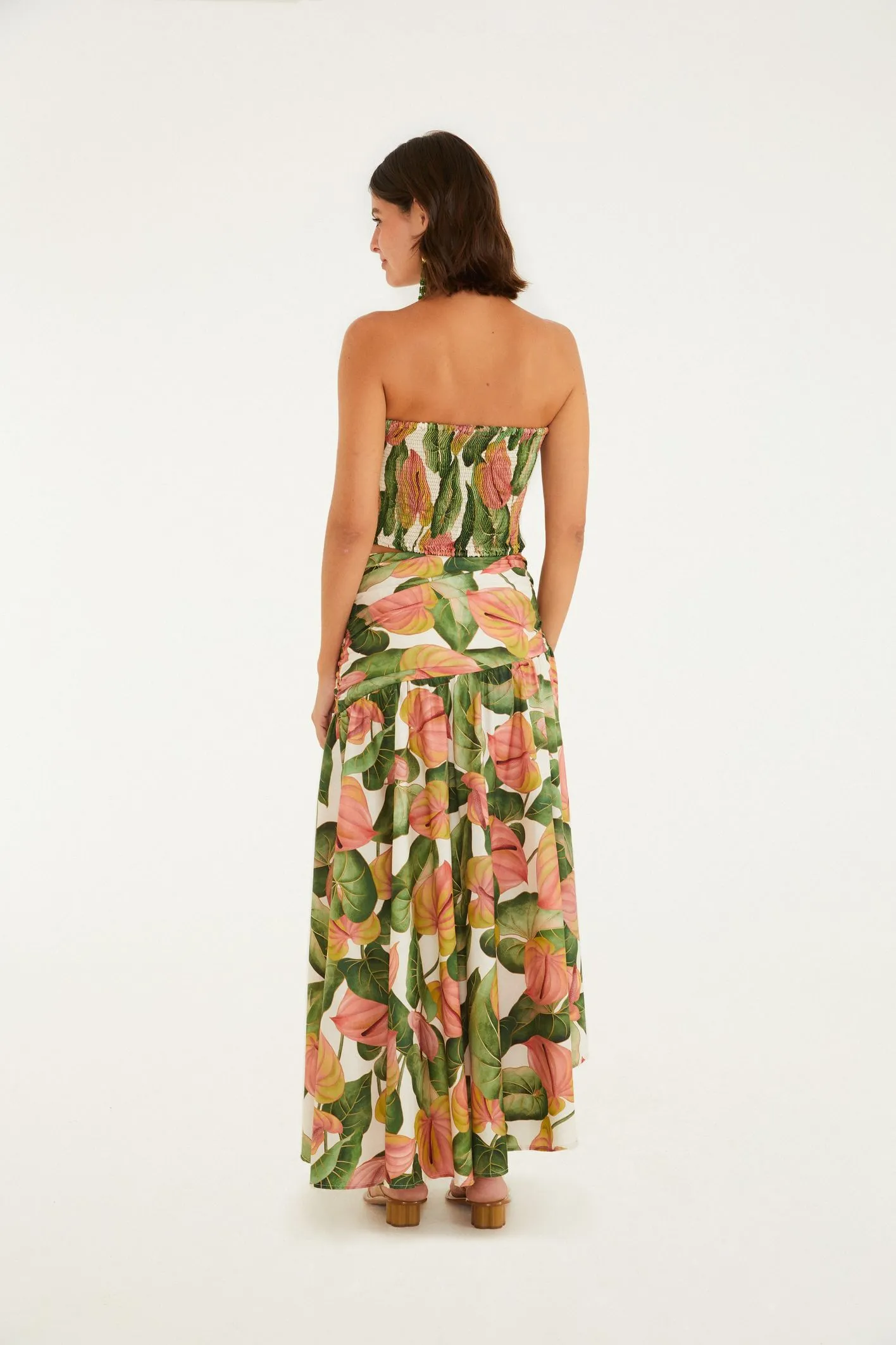 Saia longa estampada anturio corrido. possui cintura alta que define o visual e camadas que criam movimento suave a cada passo. confeccionada em tecido leve, é perfeita para dias de lazer ou eventos casuais. conta com um toque único que traduz a essência tropical. combine com blusas frescas para um look autêntico e cheio de presença. FARM RIO original – verão 26.