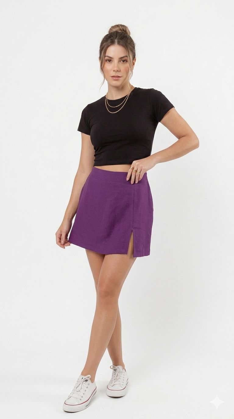 Saia Ponto Roma, sendo shorts saia para um maior conforto e segurança. Super tendência. Aposte em calçados e acessórios. Possui elástico na cintura