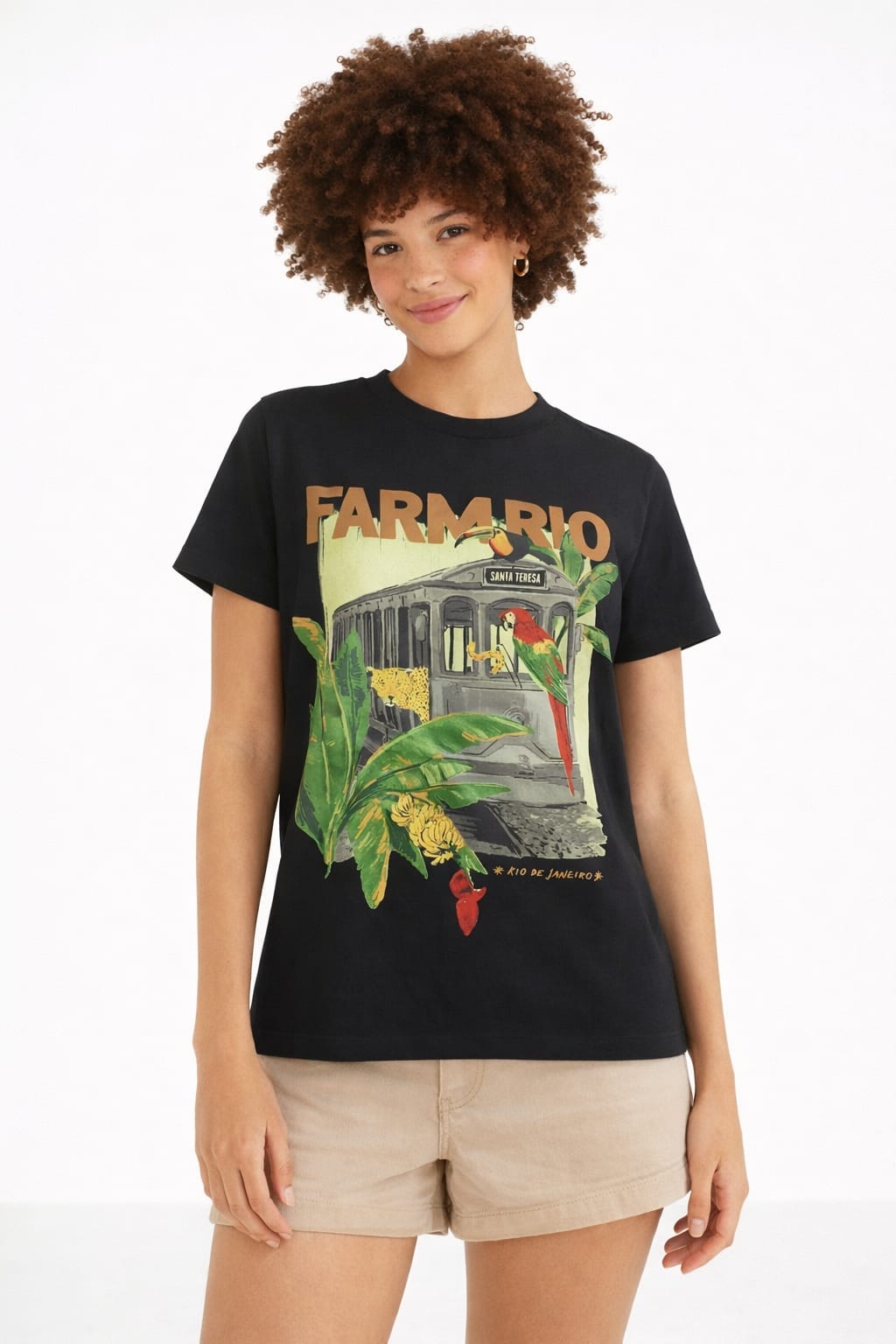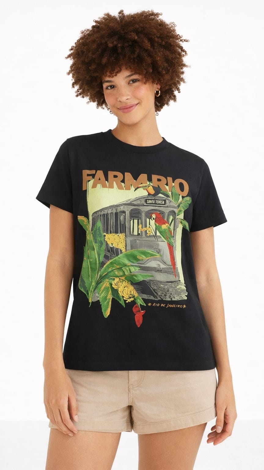 A T-shirt Farm Média Bonde Lotado Preta traz a essência vibrante do Rio de Janeiro em uma peça cheia de personalidade. Com estampa exclusiva inspirada no clássico bondinho de Santa Teresa, combinada com elementos tropicais como folhagens e araras, ela é perfeita para quem ama um visual autêntico e cheio de estilo.