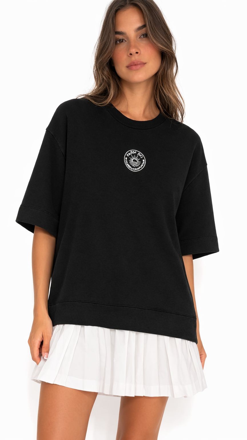 O vestido curto moletom bordado da Farm Rio une conforto e estilo em uma peça prática e cheia de charme. Confeccionado em moletom macio, ele proporciona uma sensação aconchegante ideal para os dias mais frescos. O bordado delicado no centro valoriza o design da peça, trazendo um toque especial ao visual. Com mangas curtas e modelagem solta, o vestido garante leveza e liberdade de movimento, sendo perfeito para produções que vão do casual ao sofisticado.