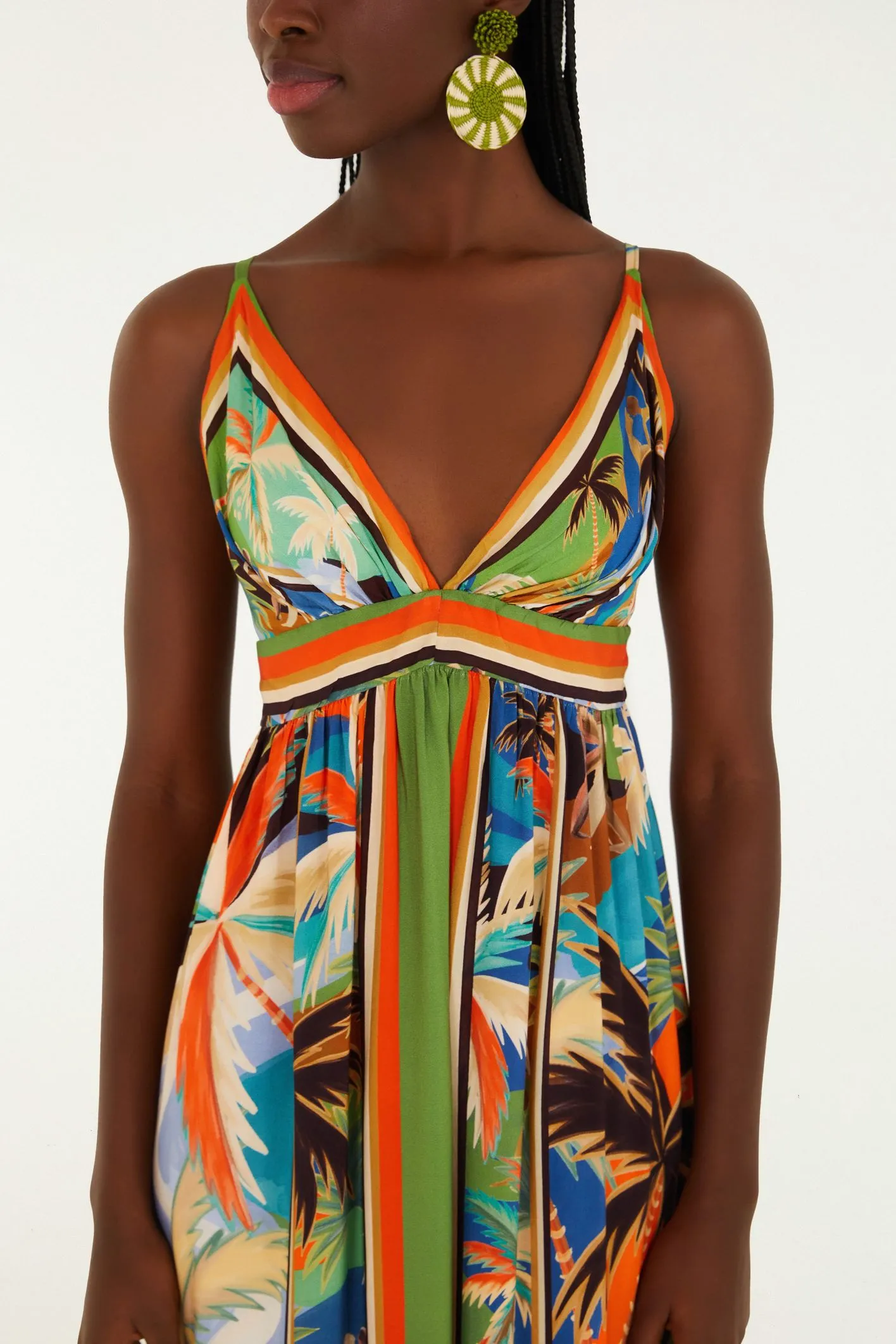Vestido lenço estampado bem querer. com decote em v e alças finas, traz um caimento leve e fluido. a cintura é marcada com detalhe delicado, evidenciando o corte solto e confortável. perfeito para momentos casuais ou um almoço ao ar livre, une conforto e estilo em um só. FARM RIO original – verão 26.