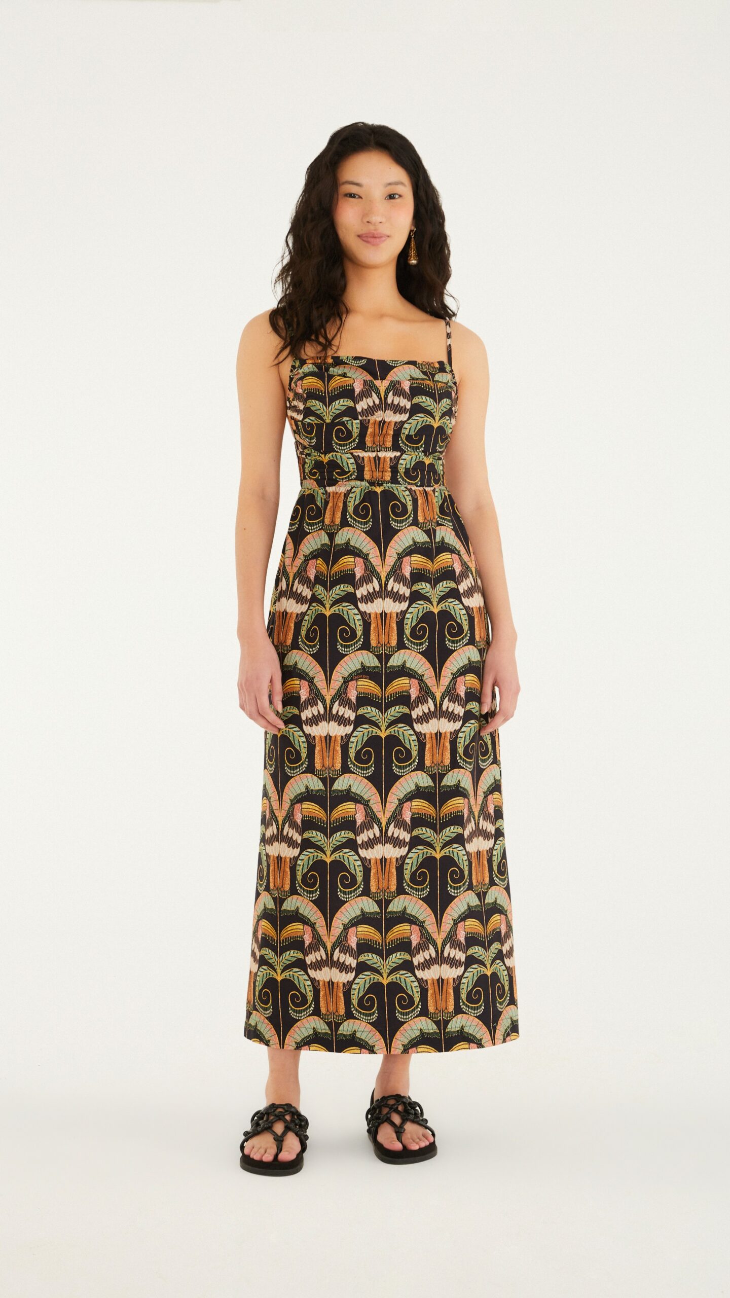 O Vestido Longo Tucano Real Farm é a tradução perfeita do estilo tropical, autêntico e cheio de vida da marca. Com estampa exclusiva inspirada na exuberância dos tucanos e na natureza brasileira, a peça traz cores marcantes e um visual alegre que destaca a sua personalidade. Sua modelagem longa e fluida proporciona elegância sem abrir mão do conforto, sendo ideal tanto para o dia quanto para ocasiões especiais. O caimento leve aliado ao design sofisticado faz desse vestido uma escolha versátil e cheia de charme.