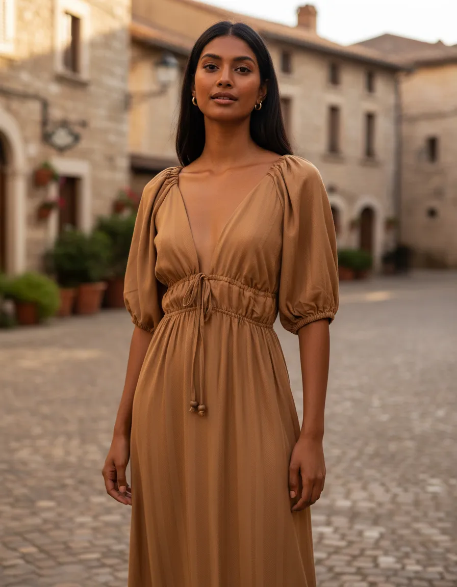 O Vestido Midi Detalhe Túnel Liso é confeccionado em tecido 97% Viscose e 3% Linho e traz um toque vibrante e elegante ao seu guarda-roupa. Com o seu decote em V que valoriza o busto, este modelo se destaca pelo túnel ajustável abaixo do busto que permite um caimento perfeito e personalizado. As mangas amplas e bufantes adicionam um ar romântico e moderno, enquanto sua saia evasê proporciona fluidez e movimento. É ideal para quem busca uma peça estilosa e também confortável, perfeita para as mais diversas ocasiões.