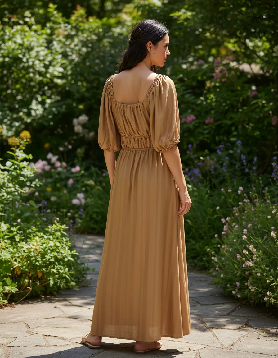Vestido Midi Detalhe Tunel Com Manga Liso Cacay R:103018