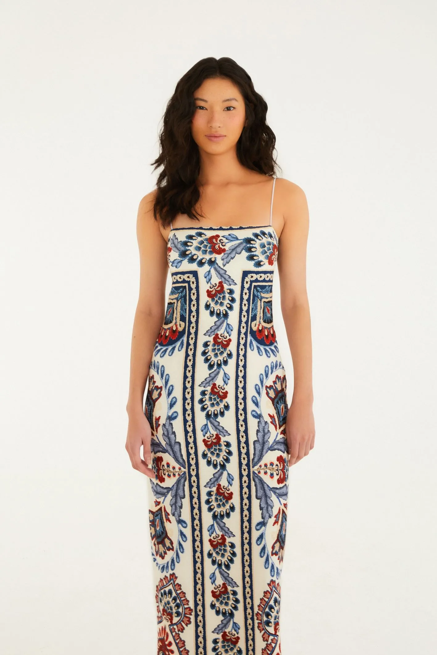 Vestido Midi Lenço Náutico FARM Modelo 347603 Estampa Exclusiva , combina sofisticação e conforto em uma peça única. Com modelagem ajustada e comprimento midi, valoriza a silhueta de forma elegante. Sua estampa exclusiva com inspiração náutica traz um toque vibrante e moderno, ideal para compor looks versáteis, do dia a dia a ocasiões especiais. Produzido com 93% viscose e 7% elastano, o tecido oferece caimento leve, toque suave e elasticidade na medida certa, garantindo conforto e liberdade de movimento. O design com alças finas realça a feminilidade, enquanto o corte preciso proporciona ajuste perfeito ao corpo.