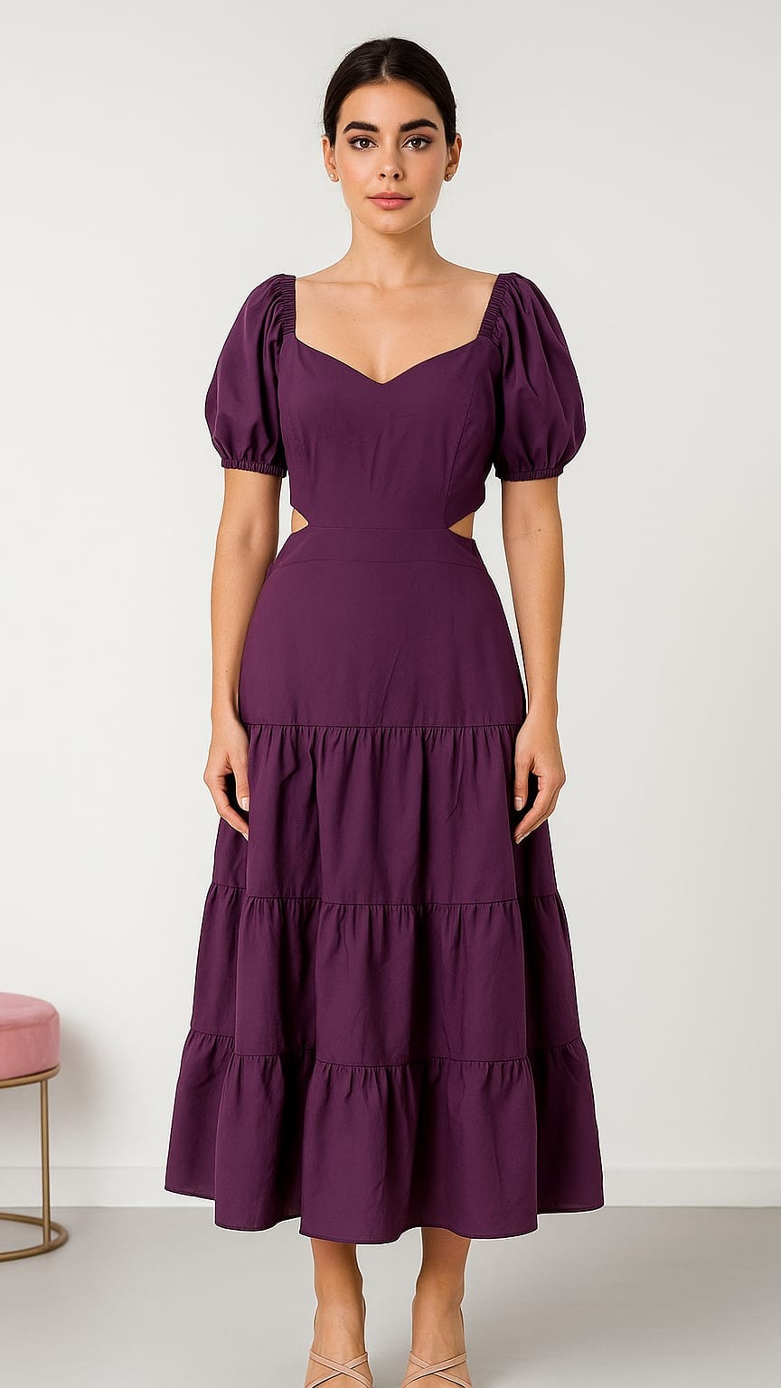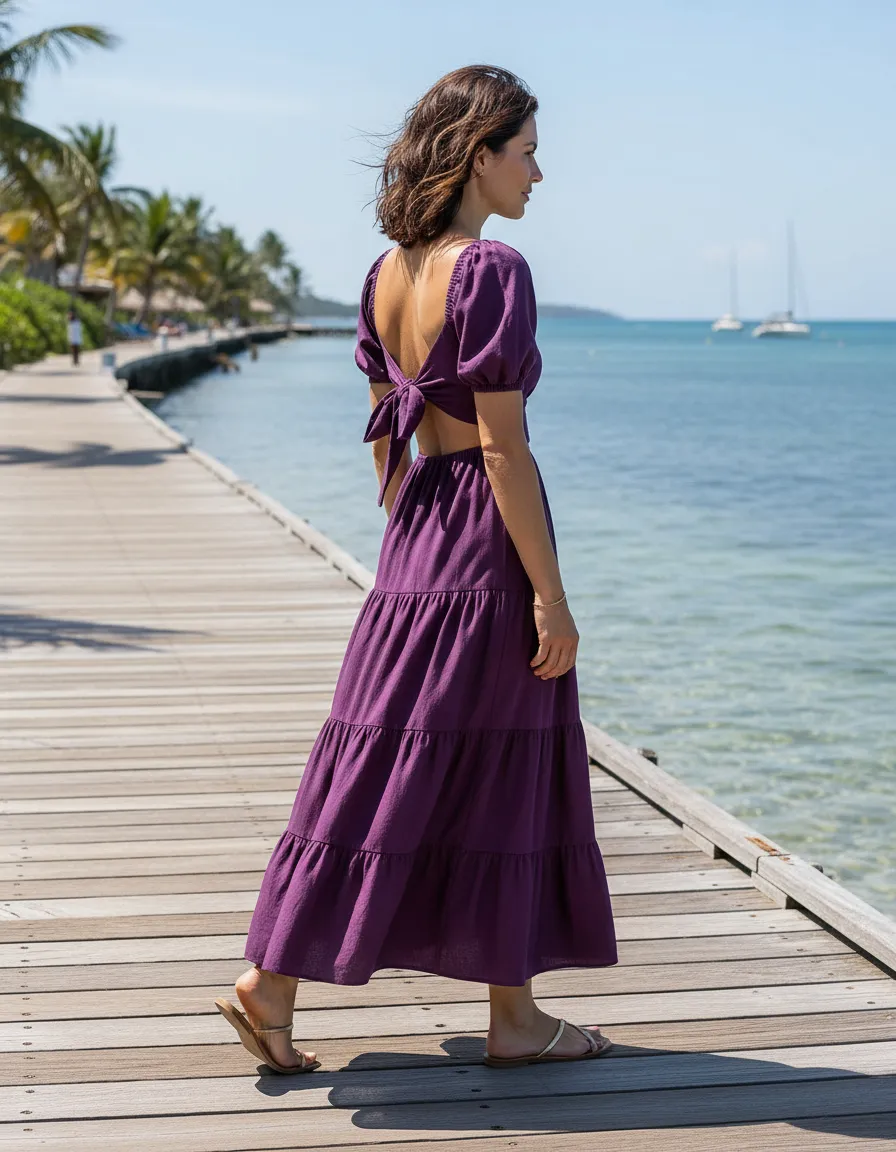 Este vestido midi em algodão combina elegância e conforto, destacando-se pelo busto ajustado com amarração nas costas e comprimento amplo. Com um leve decote moderno e mangas bufantes para um toque charmoso, o recorte na cintura realça a silhueta, enquanto os detalhes delicados de marias no comprimento adicionam um toque de sofisticação. Com lastex na parte posterior da cintura para um ajuste perfeito, esta peça versátil é perfeita para diversas ocasiões, unindo estilo e praticidade com maestria.