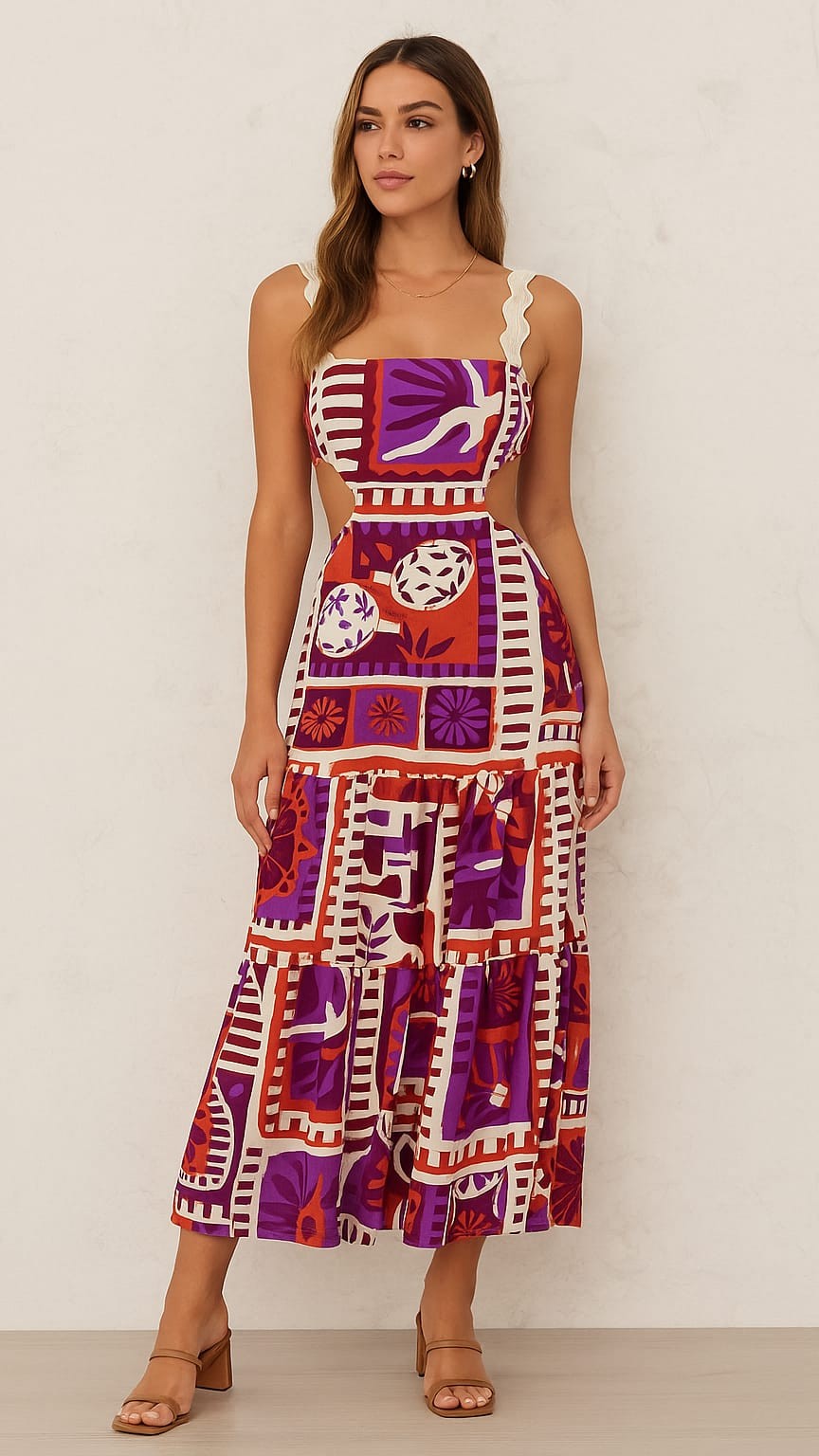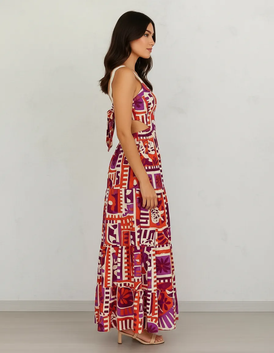 Este vestido midi da Cacay é a escolha perfeita para quem busca um toque de elegância e modernidade. Com um detalhe vazado que destaca a cintura, a peça ganha ainda mais charme com a amarração nas costas, que adiciona um elemento surpreendente ao design. Sofisticado e versátil, ele pode ser usado tanto em ocasiões mais casuais quanto em eventos especiais. Combine com sandálias delicadas e acessórios sutis para completar o look.