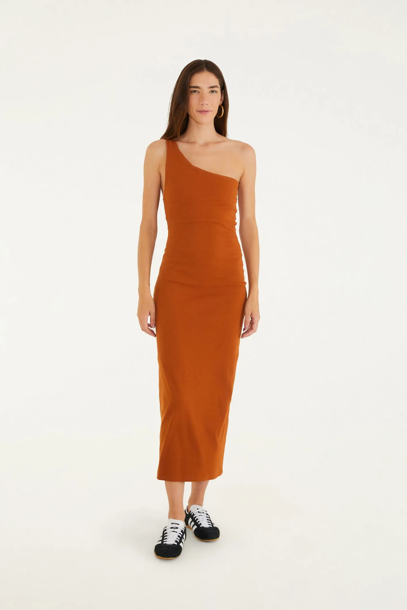 Vestido ombro só rolote. com design minimalista, apresenta alça única e acabamento impecável que valoriza o visual com casualidade. seu comprimento midi e caimento suave são perfeitos para eventos diurnos e encontros noturnos. um toque de originalidade que transforma qualquer ocasião. FARM RIO original – verão 26.
